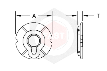 | Bolt Size | A | T | Weight (lbs.) Per 100 Pieces | Part Numbers | ||||